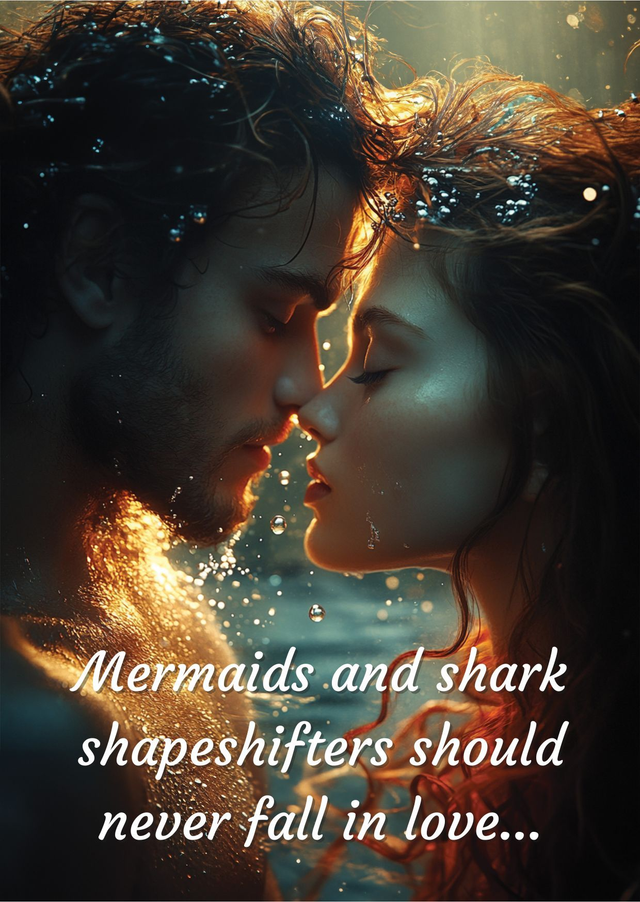Postcard of Cordelia & Wade with quote "mermaids and shark shapeshifters should never fall in love."